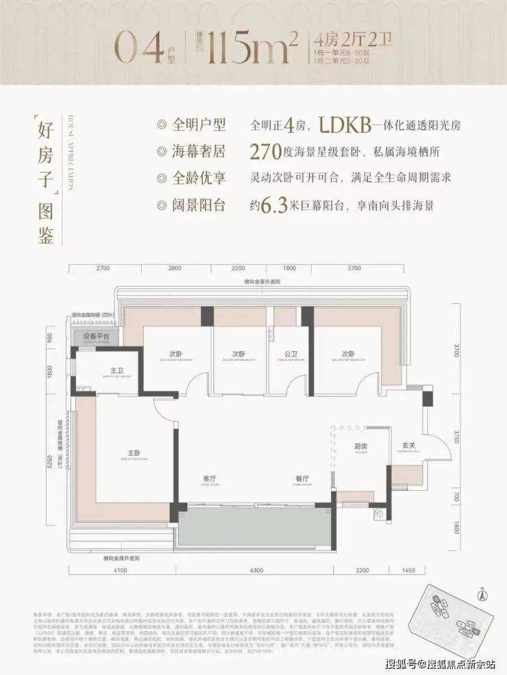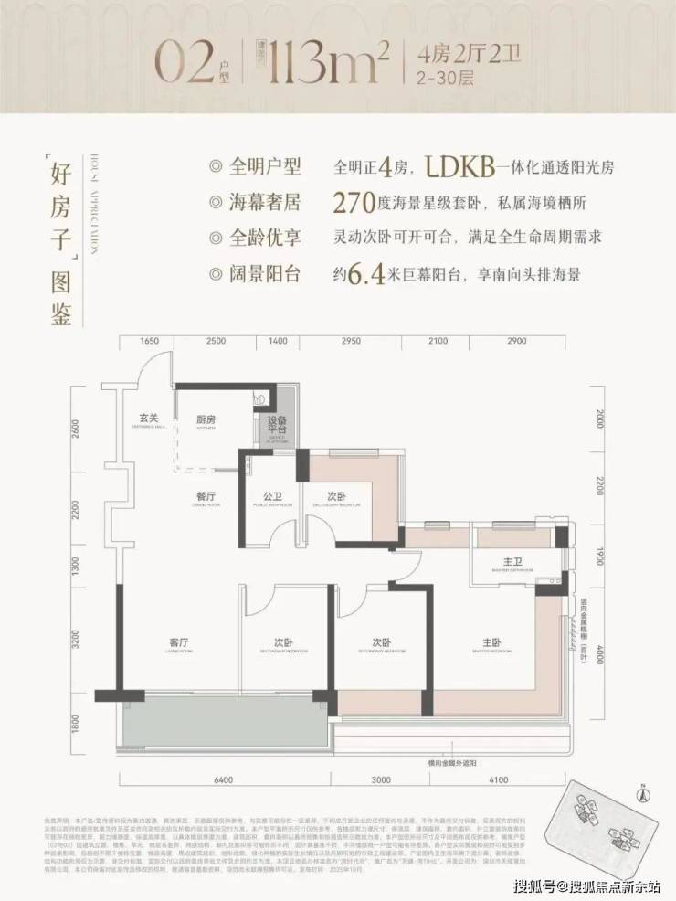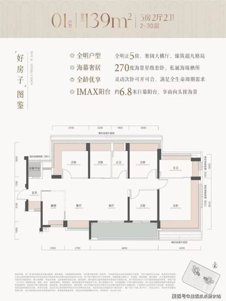 户型为113㎡四房114四房和139㎡五房约290套,2栋100米内30层住宅,2梯5户,其中主力为113㎡四房,整体以朝南及西南为主,有两套朝东北面向金众。