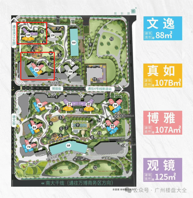 小区采用围合式布局设计,目前在售户型为88-125平三四房,主要为一期部分楼栋的尾货,还有二期的11-12栋和新加推的15栋,其中12栋今年10月份就能收楼,11-15栋都是明年收楼。