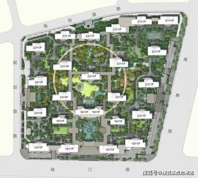 规划上,项目以 “超级底盘” 为核心理念,通过整体抬升的创新设计,将社区基座转化为一个集交通、商业、服务与社交于一体的立体生活枢纽。整体布局致力于景观资源最大化,23栋塔楼错落布置,最大化保障每户的通风、采光与湿地视野。
