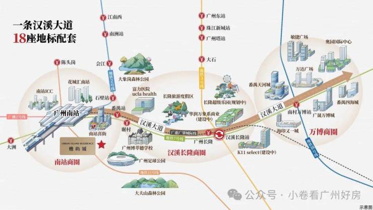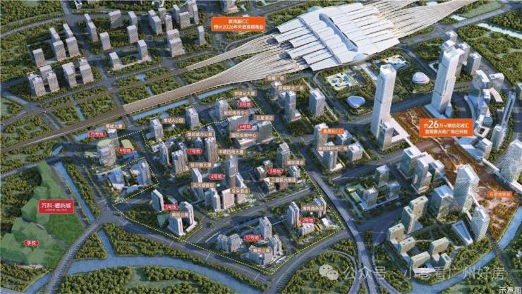1:小区依托广州南站大板块,商业写字楼目前基本都已经成型,且高铁站再侧,4条地铁交汇,有好的城市界面又适合跨城通勤需求。