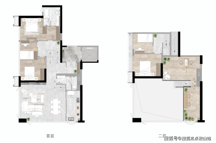 【E2#·A户型】建面约223㎡ 五房两厅三卫私享独立电梯厅,奢享私密入户体验全空间景观面,约25米一线江景延展双主卧套房设计,上下双主卧套房设计夹层多功能活动空间。