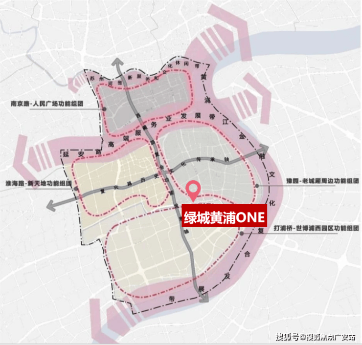 这一规划不仅物理上扩大了新天地的面积,更是重构了城市肌理,让几个片区左右相连,当中不再有断裂,联合构成一个强劲的黄浦中部板块。同时,也让绿城黄浦ONE成为了大新天地板块的新核心!