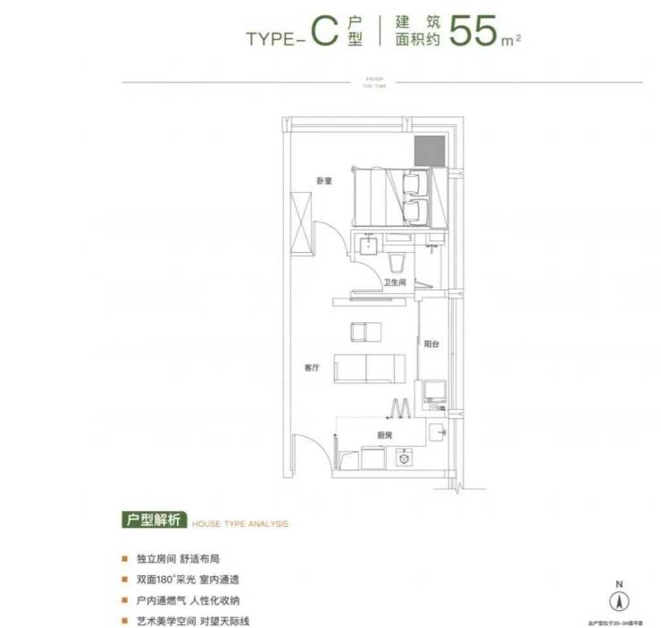 🏠55㎡(一房一厅)通燃气