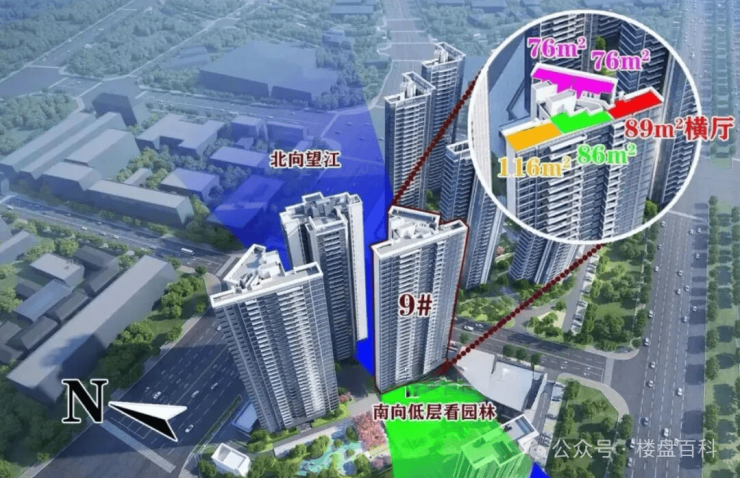 东侧地块采用了V型设计,避免了户户对视的尴尬,部分楼栋北侧还能望到湖景,南侧望中心园林;项目76-130㎡三四房的设计户型方正,采光通透,而且面积实用和多样化,也满足更多群体的需求。