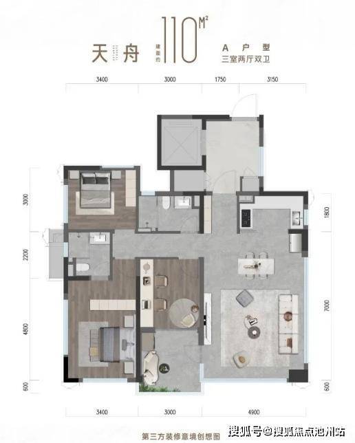 社区内部规划了双下沉庭院会所,面积达到了约1800㎡,会所内部包含恒温泳池、健身房、瑜伽室、棋牌室等多功能配置。