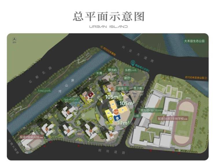 畅享艺文松弛场域:源自岛屿的立体森系景观布局,形成城市公园屿群、社区公园交互岛链、滨水度假后湾,三大主题组团,囊括全时社交需求。