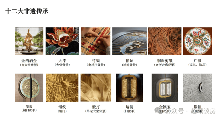 在保利玥玺湾,传统文化不是遥不可及的展品,而是融入了日常生活的每一个细节。项目在设计中深度融合传统文化与现代美学,精选十二大非遗工艺,打造出充满人文底蕴的居住空间。