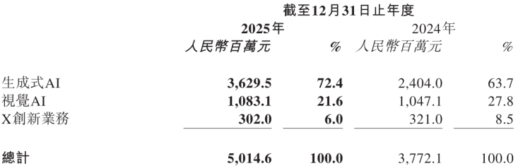 目前,生成式AI业务已成为商汤营收大头,去年实现收入36.29亿元,同比增长51%。虽然相较此前翻倍增速放缓,但在公司营收中的比重已提升到72%,同比提升8.7个百分点