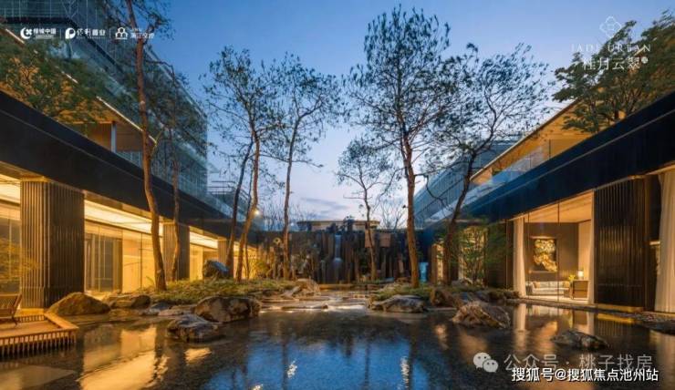 特邀近180年历史日本植弥加藤造园社共创设计,以“千里江山图”为灵感取境,巧妙运用景观高差处理手法打造下沉式庭院,围合一方大美隐于内的“泛会所空间”。