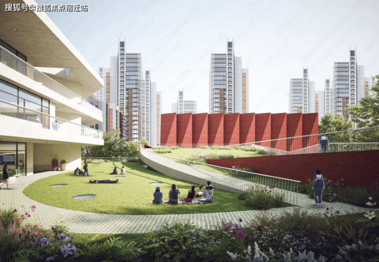 区, 南向出门即享由万科代建的中兴公园,公园绿意被充分引入中心广场,整个社区