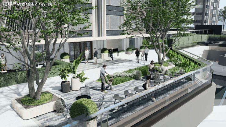 项目在街边的转角、街区的外廊,均打造 城市花园长廊超级绿核枢纽45度角贯穿街
