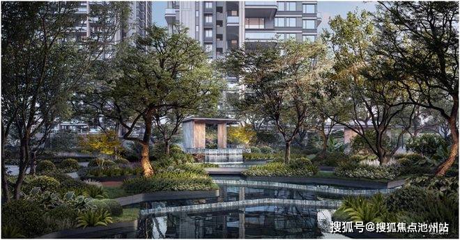 徜徉其中,犹如城市微度假的悠闲惬意,水景、浮岛、林屿、花园、草坪……不同的场景交织,犹如公园般的城市微生态景观