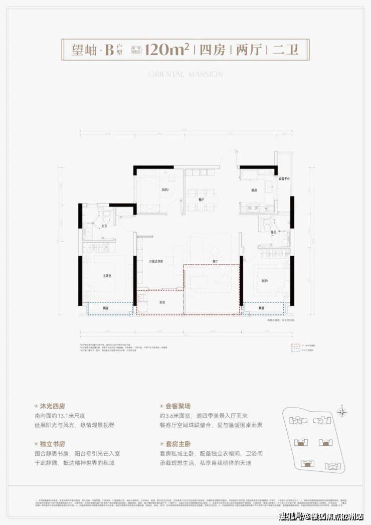 建面约120方户型:这款户型设计非常不错,在这个120方的面积段里不仅做了四房设计,而且还是四开间朝南,南向采光非常好。