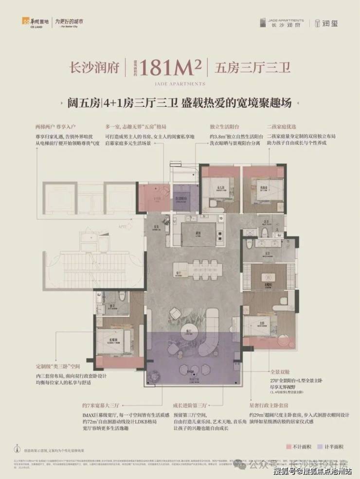 最大建面地块,更多资源占有:长沙润府五大住宅组团中总建筑面积最大的地块,自然可容纳更多丰盛生活配套资源;