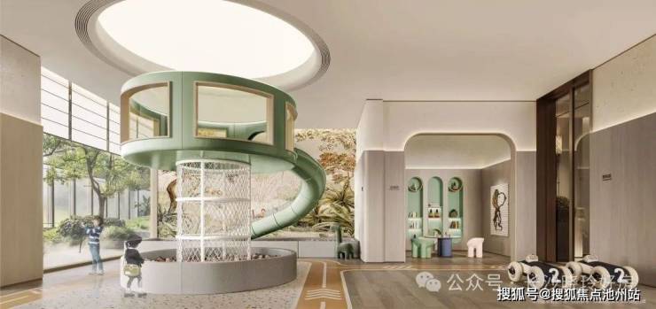 5大全龄架空层,局部为室内空间,包含休闲茶室、儿童娱乐区、亲子互动、健身康体、咖啡吧、休闲书吧等主题功能区,高占比架空层空间,将建筑空间更多服务于业主生活所需,扩容高质量社交圈。