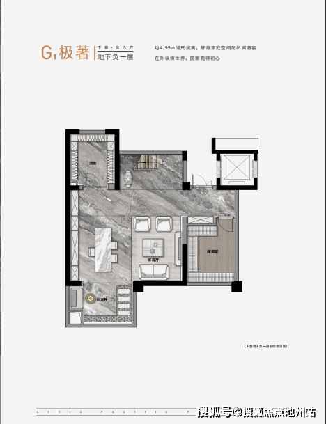 (注:下叠地下室挑高4.95米+30多平院子,下叠露台6平米,地下室76平,上叠是退台式露台6平米左右。)