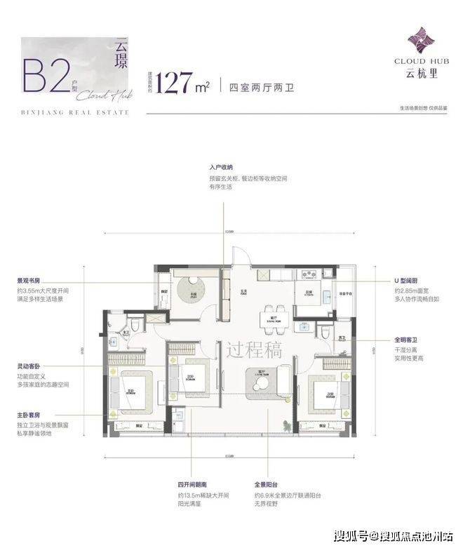 建面约127方4房2厅2卫,类双套房设计,功能太牛了!