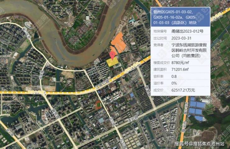 土拍市场:2023年3月31日,均胜集团所拿的鄞州区GX05-01-03-02、GX05-01-16-02a、GX05-01-03-03(高新区)地块和本案地块距离、时间上最为接近,成交楼面价约8780元/㎡。