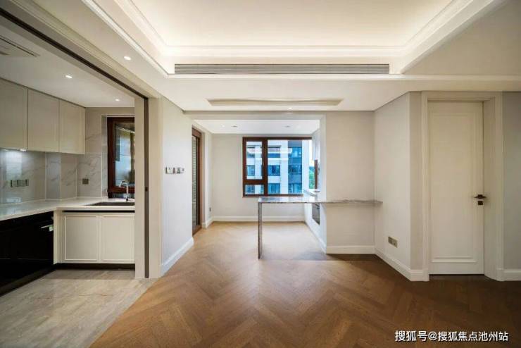 已在开放之中的美学样板间则可以更直观的展示这般的生活,全屋通铺人字纹地板,卫生间大理石地板+淋浴间酸洗防滑大理石地板,目光所及之处,墙面以及吊顶绵延的法式风格线条,橱柜、木饰门也时刻彰显着轻奢优雅的日常......