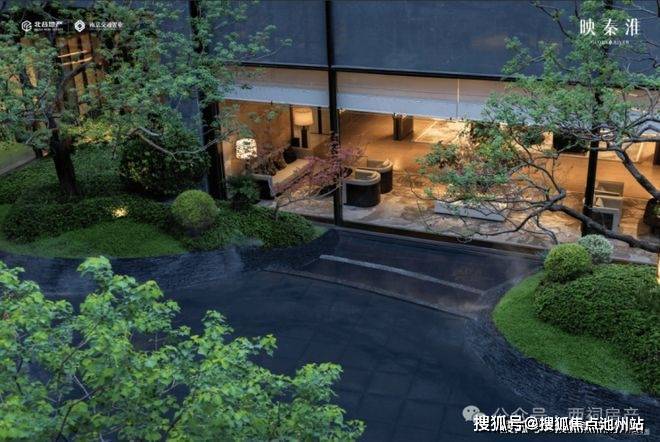 约1000方的下沉式庭院,透过会所大幅落地玻璃窗,让所有人共享 “江南四季景”。乌桕红枫、景石叠瀑,天光树影交织成诗,水声清风不疾不徐,就连每一株树的姿态都极富禅意。