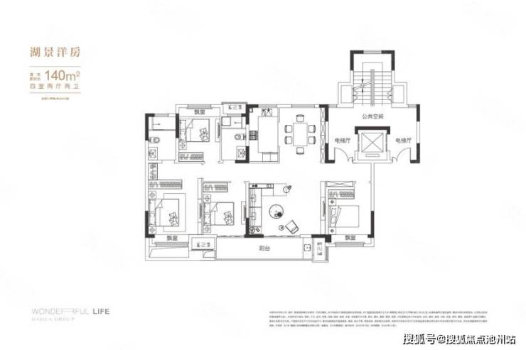 大华·梧桐院湖景洋房,区域内罕有实现四开间朝南的墅质洋房,建面约134-140㎡,独立电梯入户,最大约14.8米南向开间,约5.2米大面宽客厅,三卧朝南,套房式主卧拥享飘窗(或露台),是理想洋房范本。
