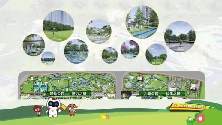 项目配建约2.3万㎡儿童、运动公园(规划),结合项目内部“庭院花园、空中花园、多功能架空层”等生态休闲空间,打造“公园里的家”,满足业主的儿童成长、青年健身、老人休闲等全龄段休闲生活需求。