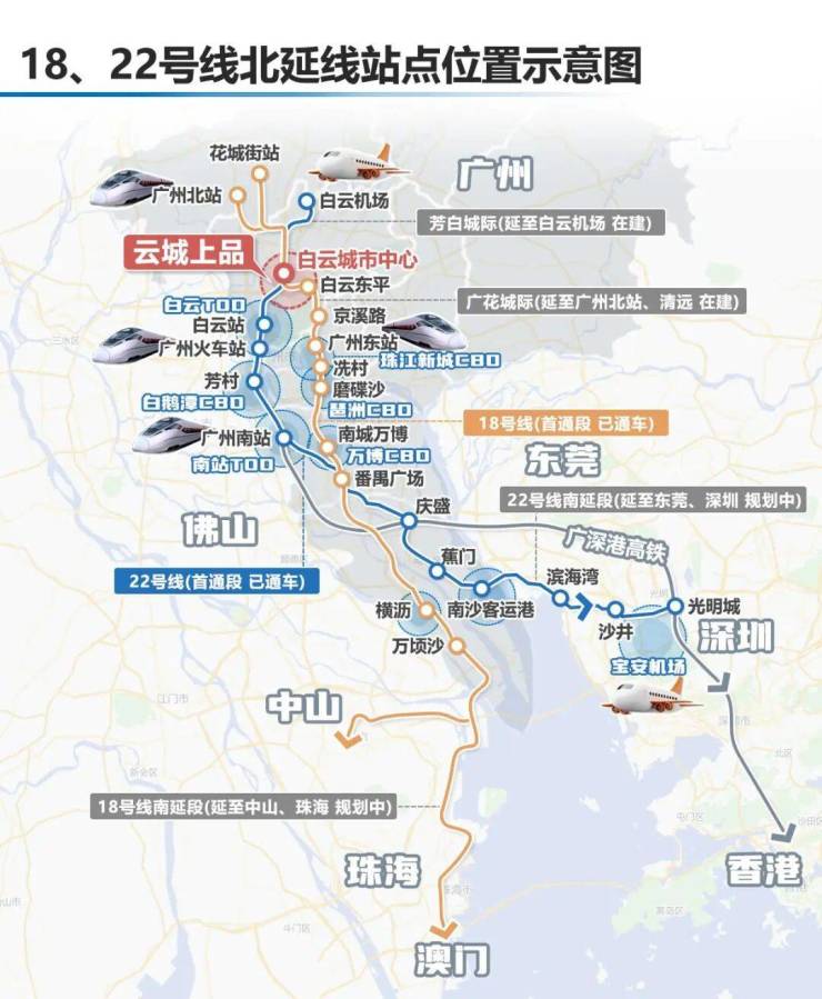 而云城上品所在的白云城市中心站,正是这两条高速地铁交汇所在,作为跨市域地铁线,通达广州,更可畅行大湾区。