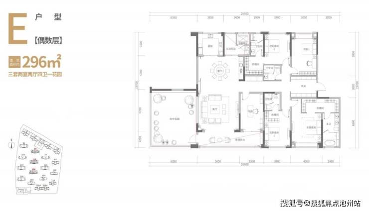 A户型赠送约7.65㎡,B户型赠送约17㎡,C户型赠送约15.1㎡;D户型赠送面积约60.2㎡(其中花园面积约46.1㎡),E户型赠送面积约70.8㎡(其中花园面积约50.7㎡)。