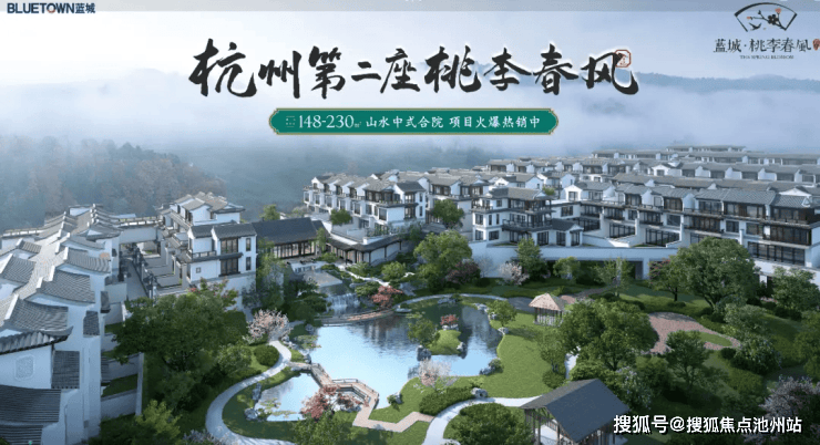 蓝城·萧山桃李春风是“桃李系”3.0升级之作,由杭州临安桃李春风原班团队操刀,定位为70年产权低密中式合院与叠墅,主力户型148–227㎡,总价330万起,容积率仅1.1,得房率超95%,在“限墅令”背景下属稀缺改善型产品,精准契合城市中产对“自然栖居+文化认同”的双重需求。