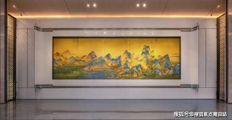首先,以宋代名作《千里江山图》为蓝本,结合福州特有的漆画技艺,精心绘制出宽9米、高3米的大门画景,成为项目的门面与体面,彰显出一种尊贵气度。