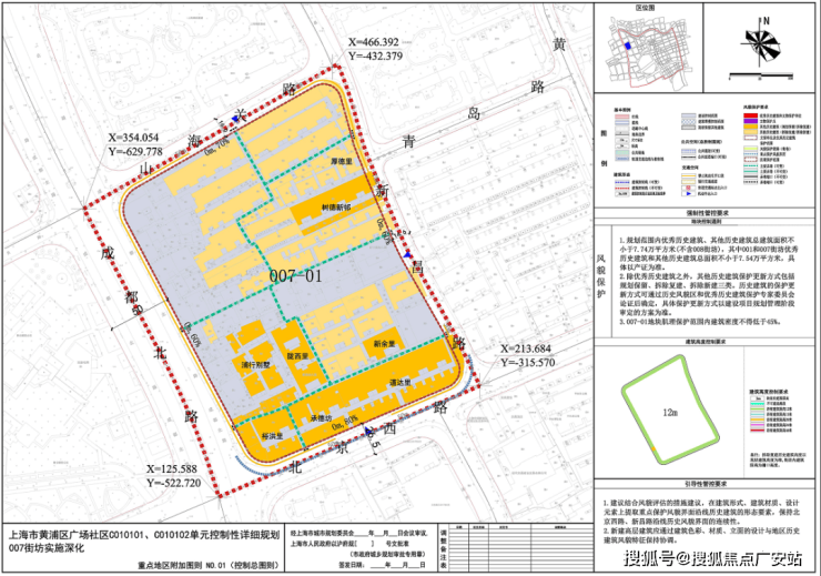 1号地块规划3栋超高层和1栋高层,最高达约165米。具体位置是西至成都北路、东至新昌路、南至新闸路、北至南苏州河路;7号地块规划为风貌别墅。