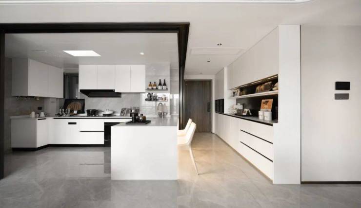 早晨,家人可以在岛台共进早餐,短暂却温馨的时光开启一天美好;傍晚,大人在厨房里做饭时,还能监督和辅导在旁做作业的孩子,两不耽误。