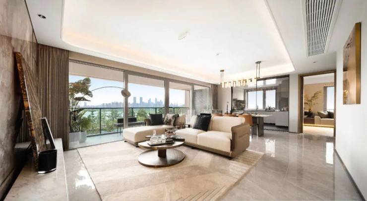 建面约137㎡西边套样板房,三个卧室都朝南,实现了「阳光平权」,双阳台设计,东西向阳台面宽达到了约6.5米,3500元/㎡的精装配置,日立中央空调、菲斯曼地暖;厨房里洗碗机、潮流款的方太抽油烟机;还有玄关柜、全屋墙纸、客厅岩板背景墙、智能马桶、主卧背景墙等等都配齐了,日常的生活细节都照顾妥帖。