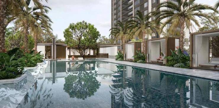 每一幢建筑都拥有楼王的景观视野,让居住者在家中即可饱览四季变换的美景,享受无与伦比的居住体验。中央泳池,宛如一颗璀璨的明珠镶嵌于都市之心,它借鉴了度假酒店的奢华与闲适,为繁忙的都市生活带来一抹清新的度假风情。