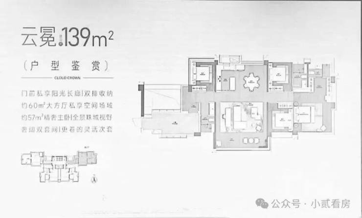 在户型设计上,全部为南向四房,最小户型98㎡,最大户型139㎡,据说是超新规产品,得房率去到120-130%。