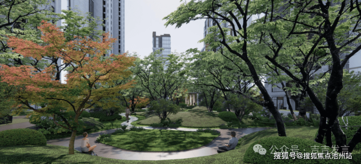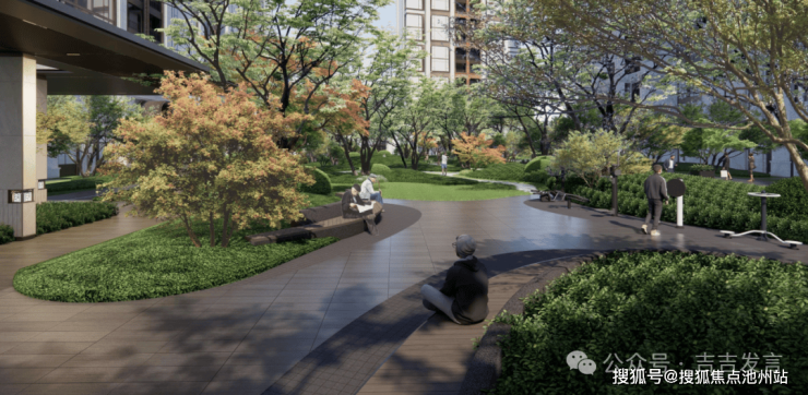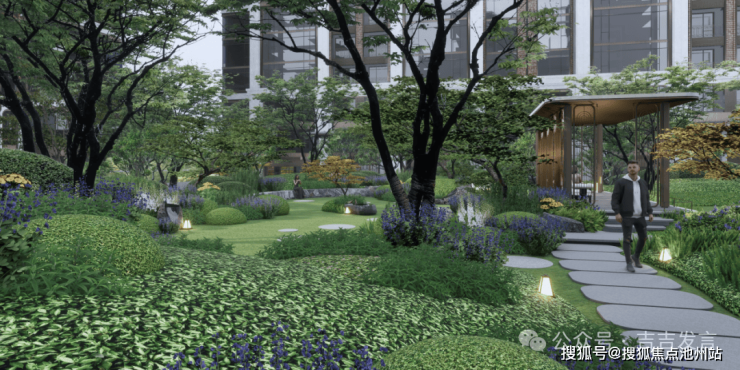 十花园其三:【康养花园】以康养为主题,设置康养花园、林下太极、健身平台等,从社区邻里、生态自然、健康运动等多维度提升居住体验,周边设计观景平台,阳光草坪与组团植物共同营造静谧休闲空间,便于长者交流与家庭户外活动。