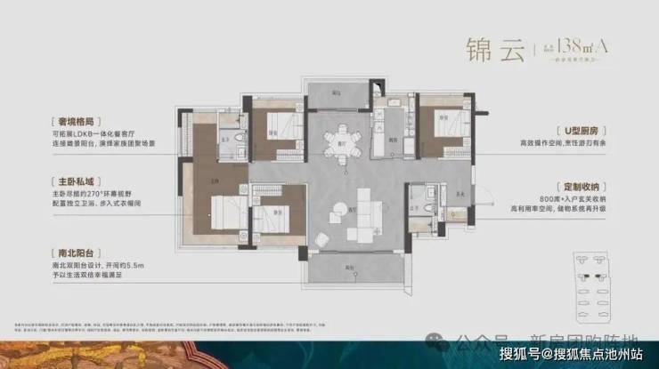 138㎡A户型,是128㎡的升级放大版,客厅+主阳台尺度更加阔绰,达5.5米宽。
