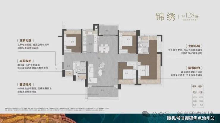 108㎡刚需三房:采用凸出的 “飞机户型”,区别于传统四叶草设计,主卧与 3 个次卧分区布局,减少家人间的相互干扰,私密性更优。