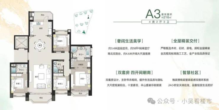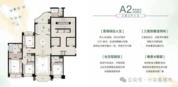 目前项目主要在售R40-1.2.3栋和R5-5栋,户型为130-147-216-238-265平的三至五房,单价2.5万起!面积越大越贵,有毛坯有装修,户型图如下: