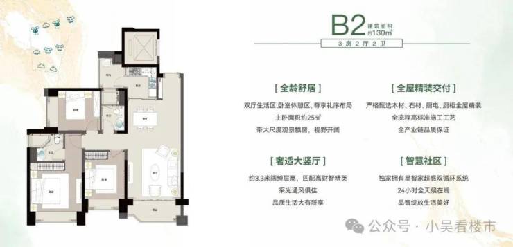 在社区打造上,项目尽可能保证每栋楼过百米的舒适间距,而且不惜成本地建设3.3-3.5米的顶豪级层高。