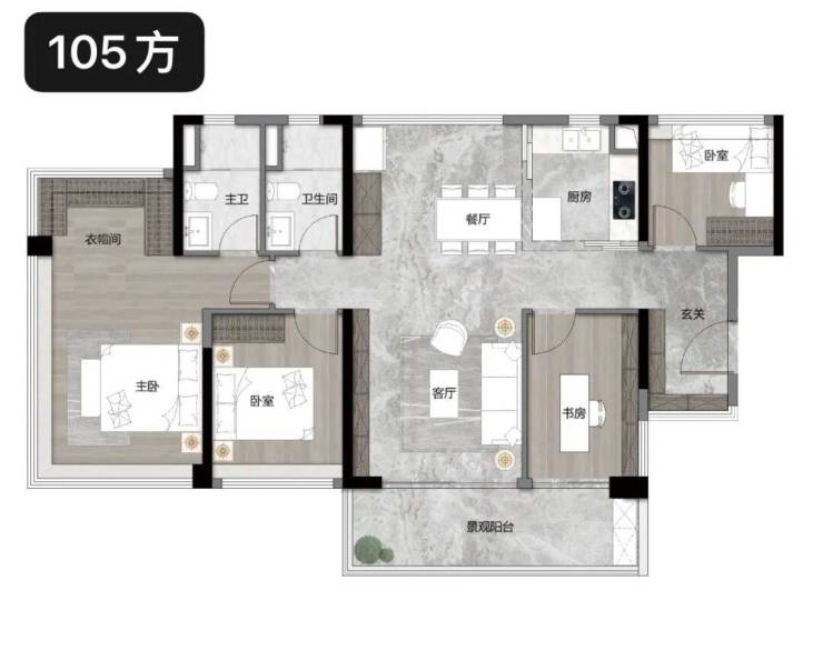 【约105㎡ 4空间2卫】