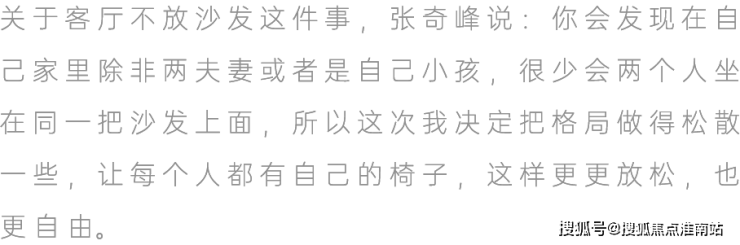 张奇峰说:空间的布局和我们当下的生活状态是直接关联的,我们以前住的地方有4个房间,但是其中两个基本没用过,所以这次干脆把多余的房间都去掉了。