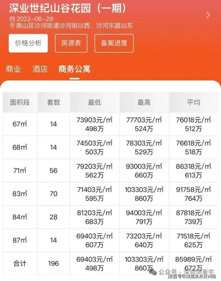 最新消息:【深业世纪山谷】位于深圳市南山区沙河东路218号、距离地铁29号线白石洲北站约200米、1号线和20号线白石洲站约680米;住宅342套3A栋和3B栋233/280/386平三至四房和420--1080平云端复式户型,住宅于2024年11月28号取证开盘,342套房源目前卖了约166套、去化48.5%,目前剩下约176套,样板房开放中,有兴趣可联系后台预约,航拍全景图已拍,项目户型图放在文章底部。