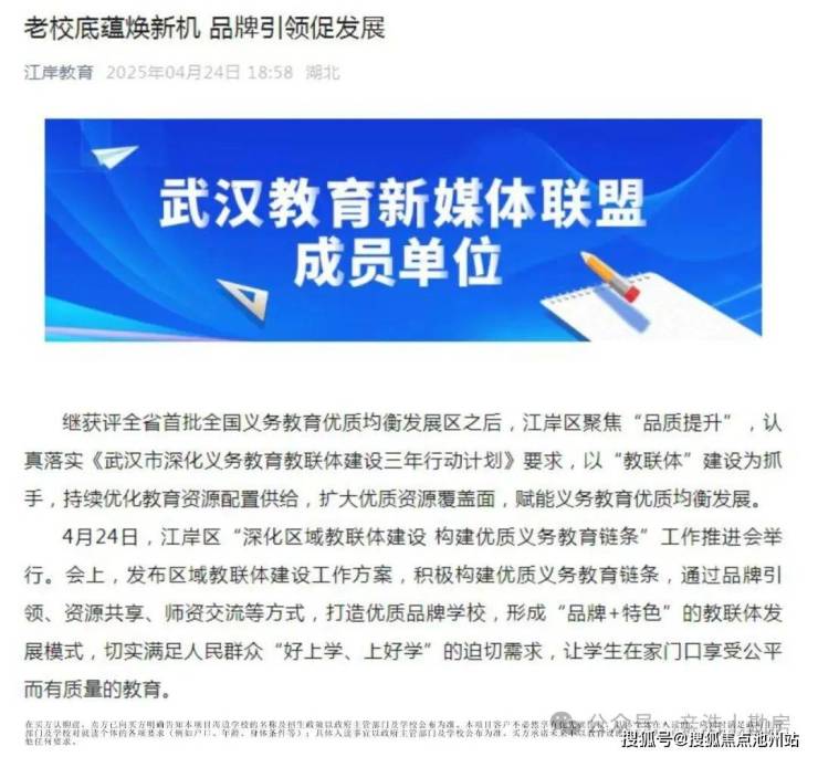 将江岸区新村小学纳入“武汉市长春品牌教联体”,加挂“江岸区长春街第二小学新村校区”校牌。探索“品牌+特色”的教联体发展新范式,打造师资交流、优势互补、资源共享、管理共进、教学共研、协同发展、共生共荣的教育生态,形成品牌共建的强大合力。