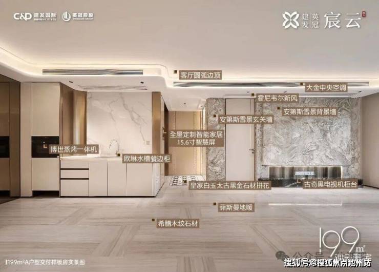 在室内精装上,宸云也采用超高的精装标准:大金中央空调、霍尼韦尔新风、博世洗碗机、博世蒸烤一体机、方太油烟机、方太燃气灶等,餐等运用大面积石材,堪称“奢石博物馆”,全屋还定制了让生活更有秩序和整洁的收纳体系,高层户户赠送储藏柜。