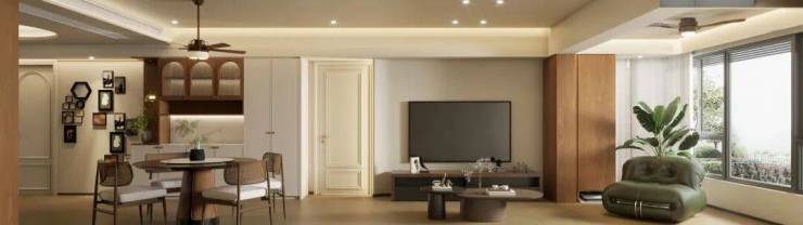 客餐区以温润的原木色作为主色调,营造出舒适放松的空间氛围。