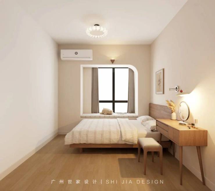 主卧延续简洁的原木风格,整体氛围温和放松,营造舒适平和的睡眠环境。