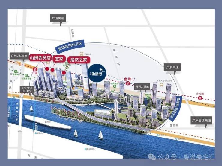 保利鱼珠港位于临港经济区南向临江头排位置,占地约59.6万m²,总建面约110万m²,其建筑业态包括甲级写字楼、公寓、酒店、独栋商业体等,由保利连片开发打造,其定位功能包含居住、办公、商业、娱乐等为一体。