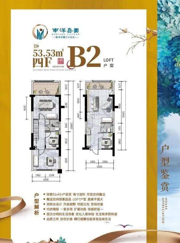 B2户型 LOFT 约53㎡ 四室两厅两卫