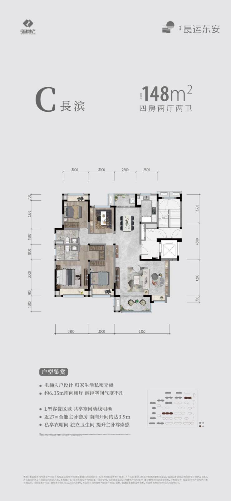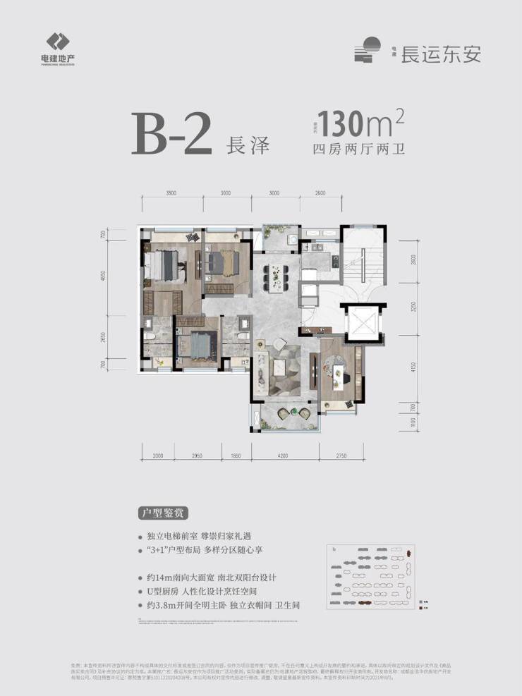 项目一共有130、148、154三个标准户型(大部分为电梯入户产品),以及少量底跃带花园产品
